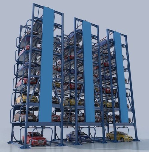 垂直循環(huán)機(jī)械式停車,是占用二個(gè)劃線車位的位置,停18-20臺(tái)車,總高達(dá)20米,設(shè)備垂直方向的轉(zhuǎn)圈,車保持平衡狀態(tài)隨設(shè)備一起垂直方向的轉(zhuǎn)圈,所以叫垂直循環(huán),這種垂直循環(huán)機(jī)械式停車建造是獨(dú)立的,占用二個(gè)劃線車位的位置就是一座,一座能停放18-20臺(tái)車,這種垂直循環(huán)機(jī)械式停車的應(yīng)用意義是真正的向空間要更多車位,且占地面積較小,操作簡單存取車時(shí)間短,且方便管理。建造垂直循環(huán)是對車位需求真正的剛需,一般安裝在室外,廣泛運(yùn)用于寫字樓,商業(yè)街,車站等車位需求較大的區(qū)域場所。